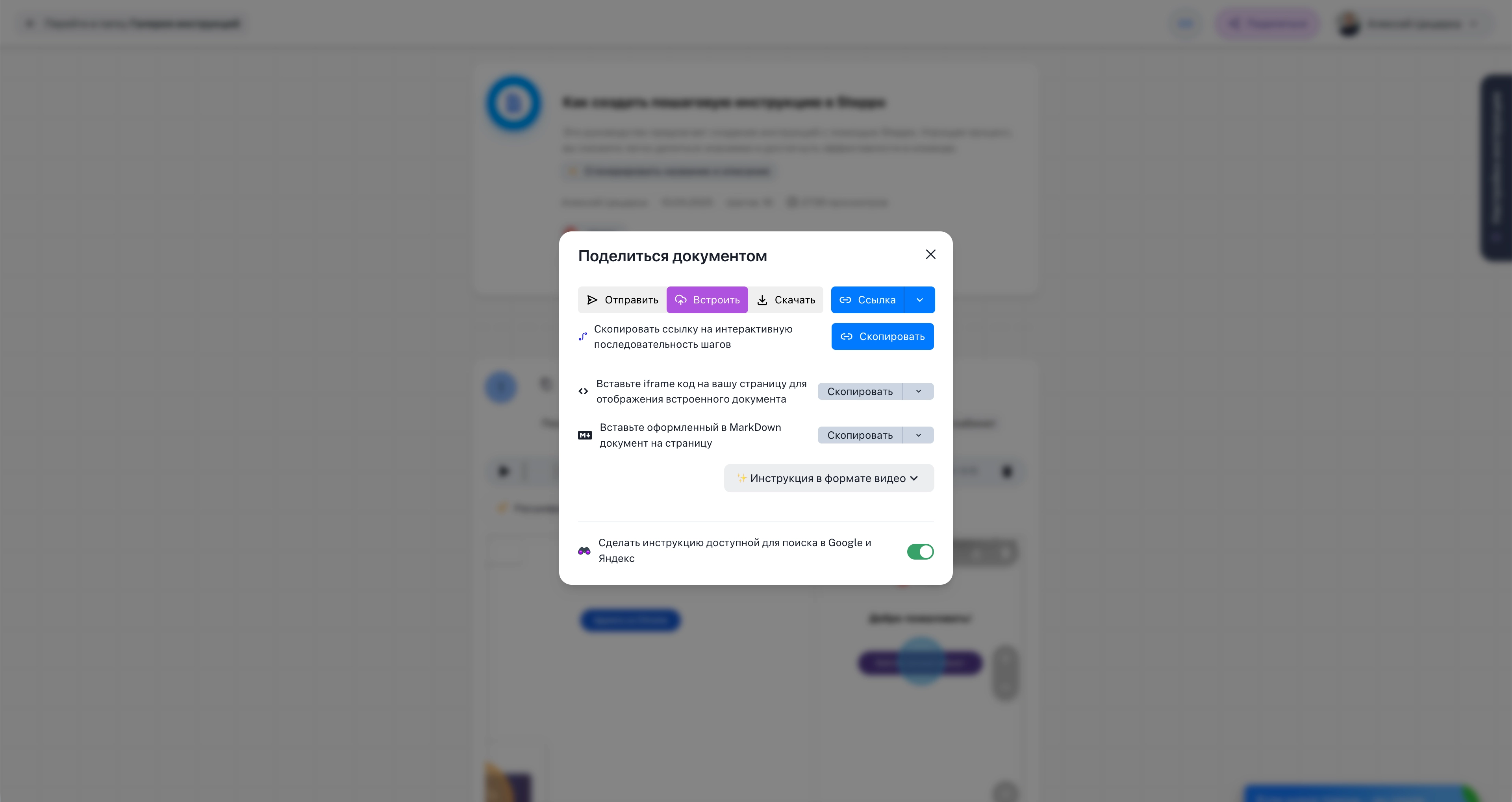 Использовать общий доступ — чтобы сотрудники могли открывать инструкцию без регистрации.