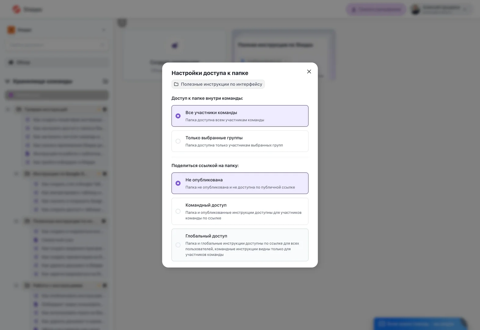 2. Командный доступ – инструкции и папка будет доступна по ссылке только участникам команды;
